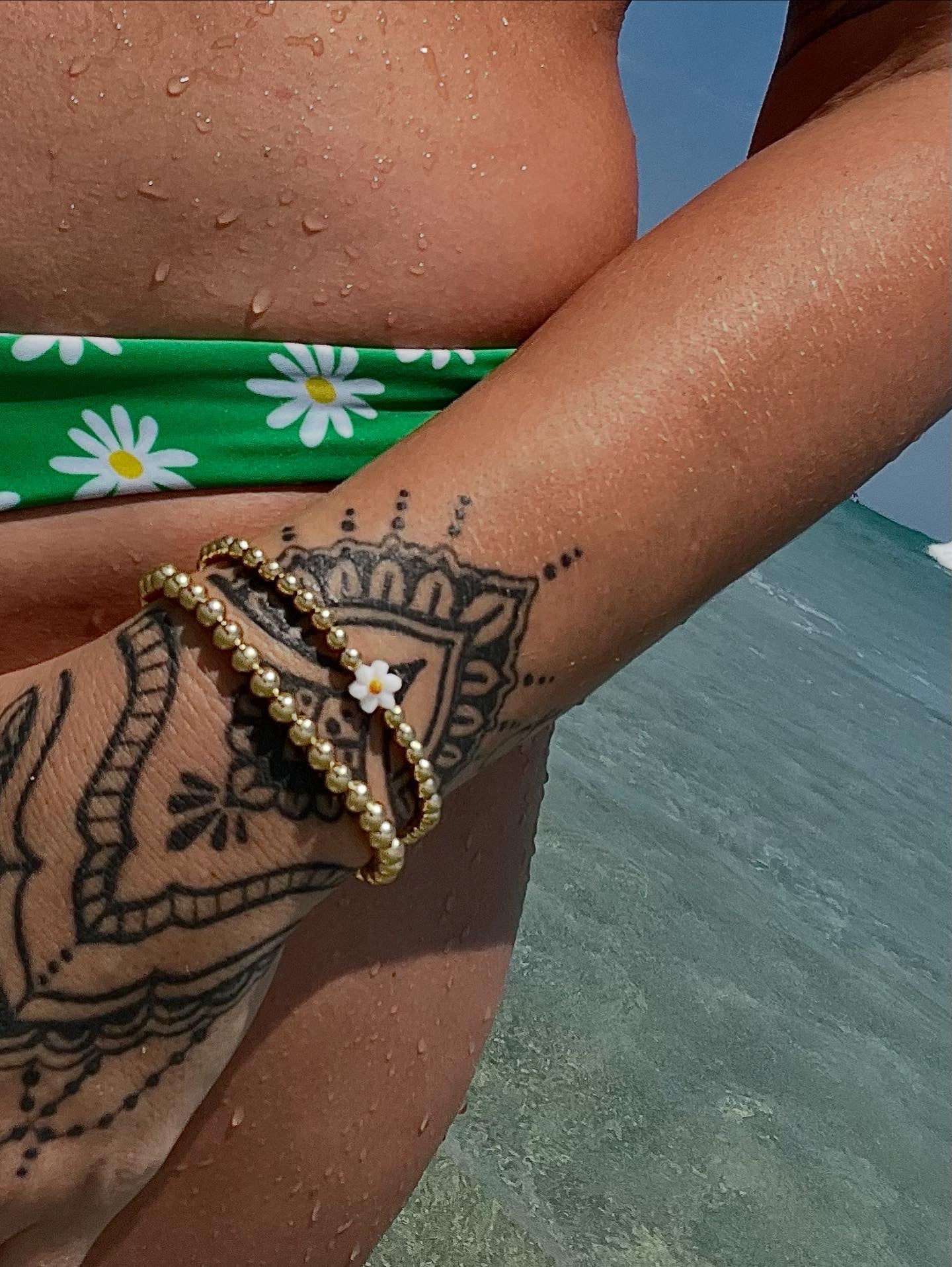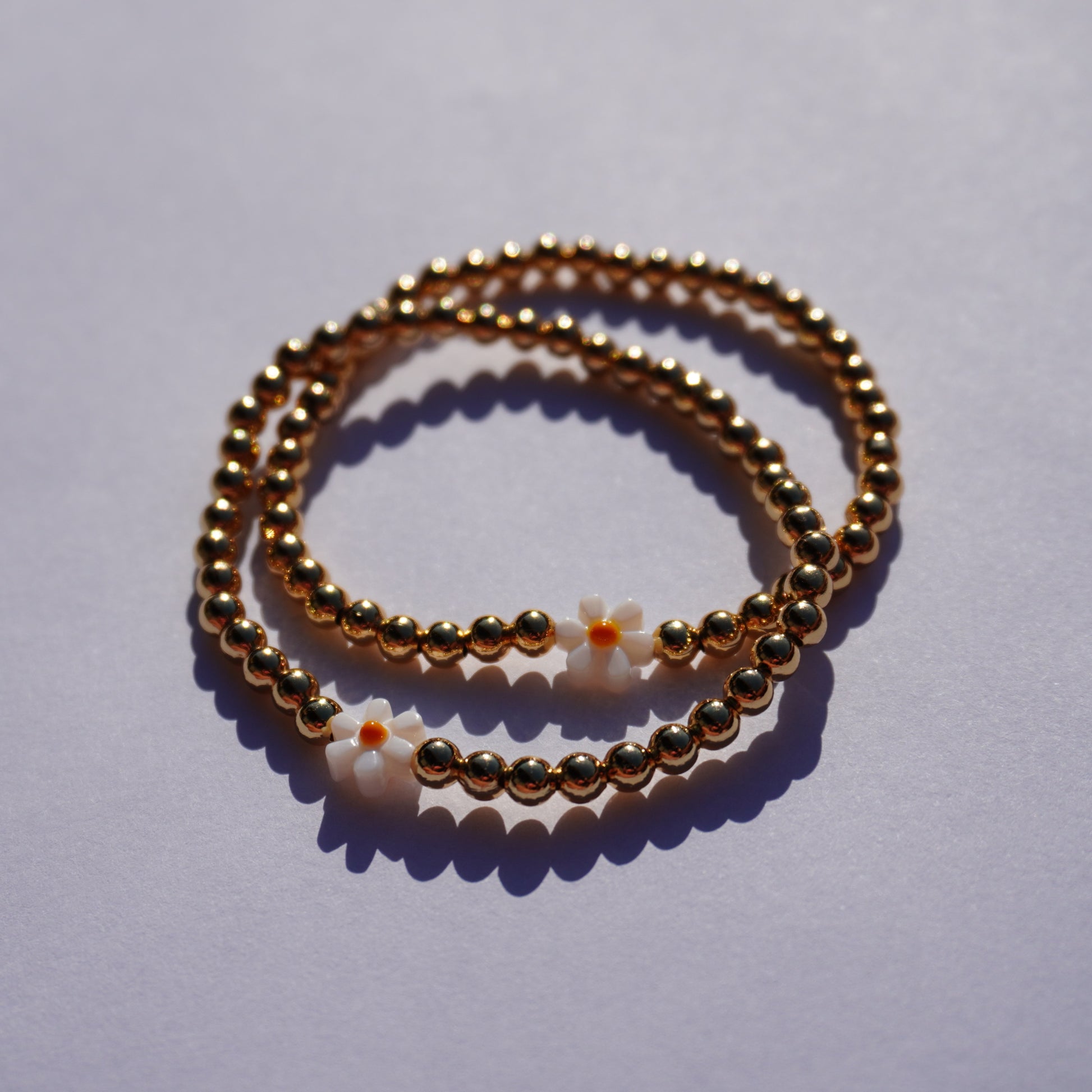 Baby Daisy adds the cutest piece of Kandi to the Classic Gold bracelet. It features a natural shell carved into a flower and finished with an enamel center.