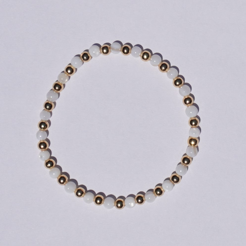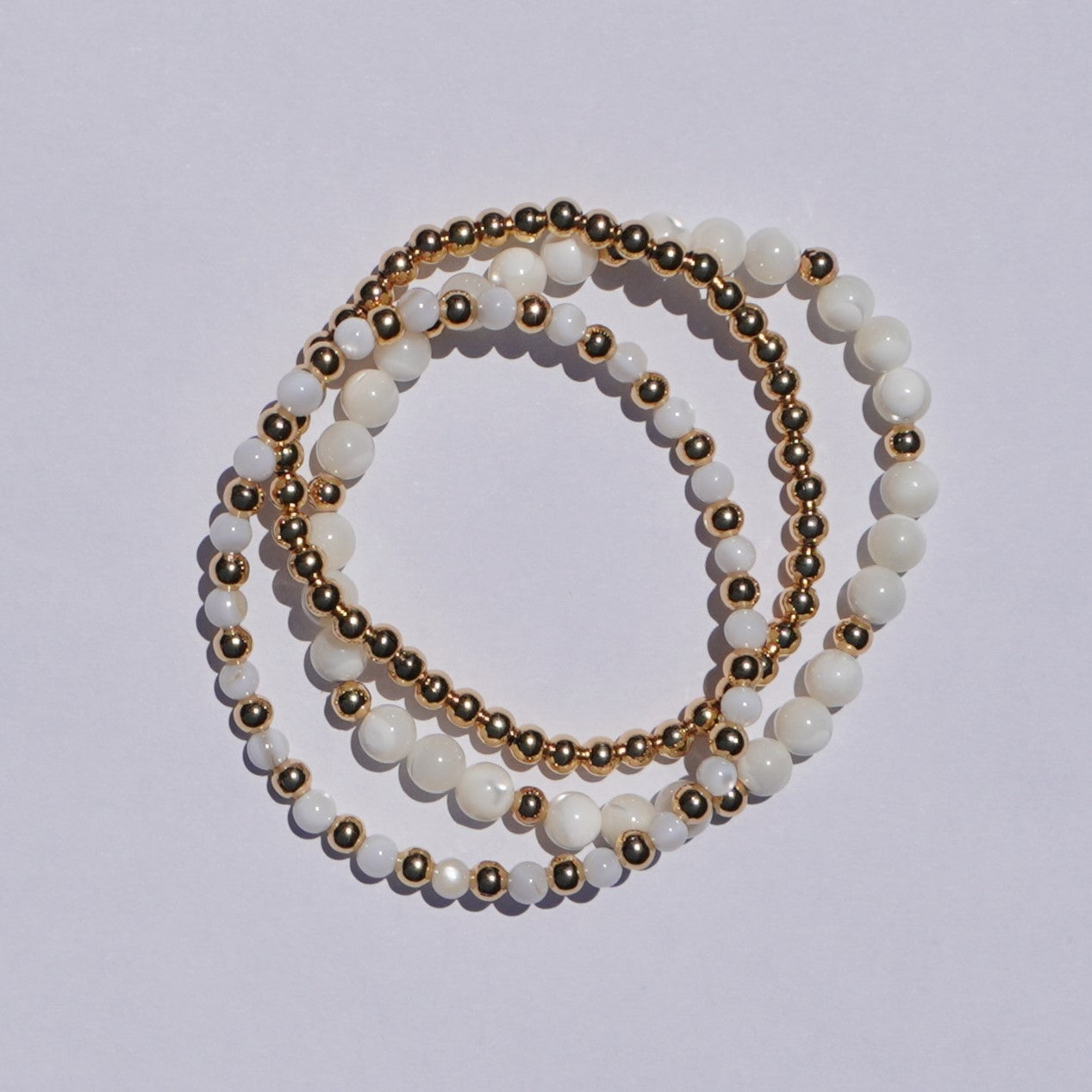 This natural shell beaded bracelet is accented with radiant gold details, capturing an effortless beachy elegance. Stack together or wear solo for a touch of coastal charm.